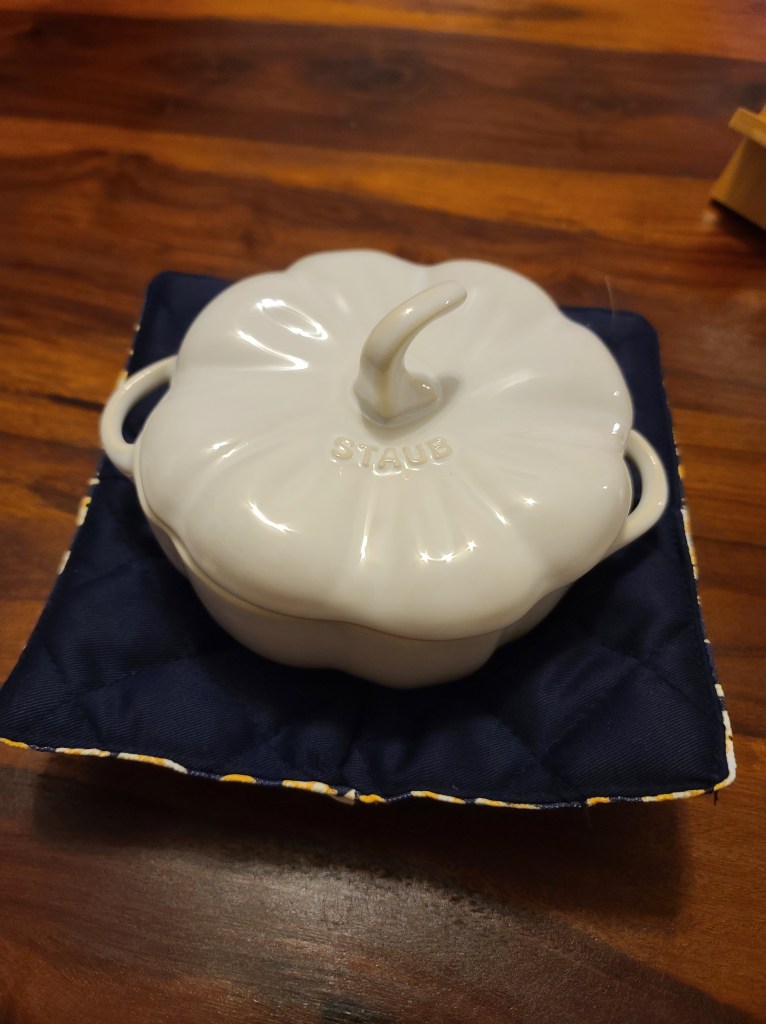 At first I thought this thing was an oven mitt (and was really excited because I’m old and boring). But no! It’s a bowl coozie! I love it and it may be one of my favorite new kitchen items because let me tell ya, microwaved bowls get HOT. Also, a shoutout to the cute ceramic pumpkin dish I got last week.