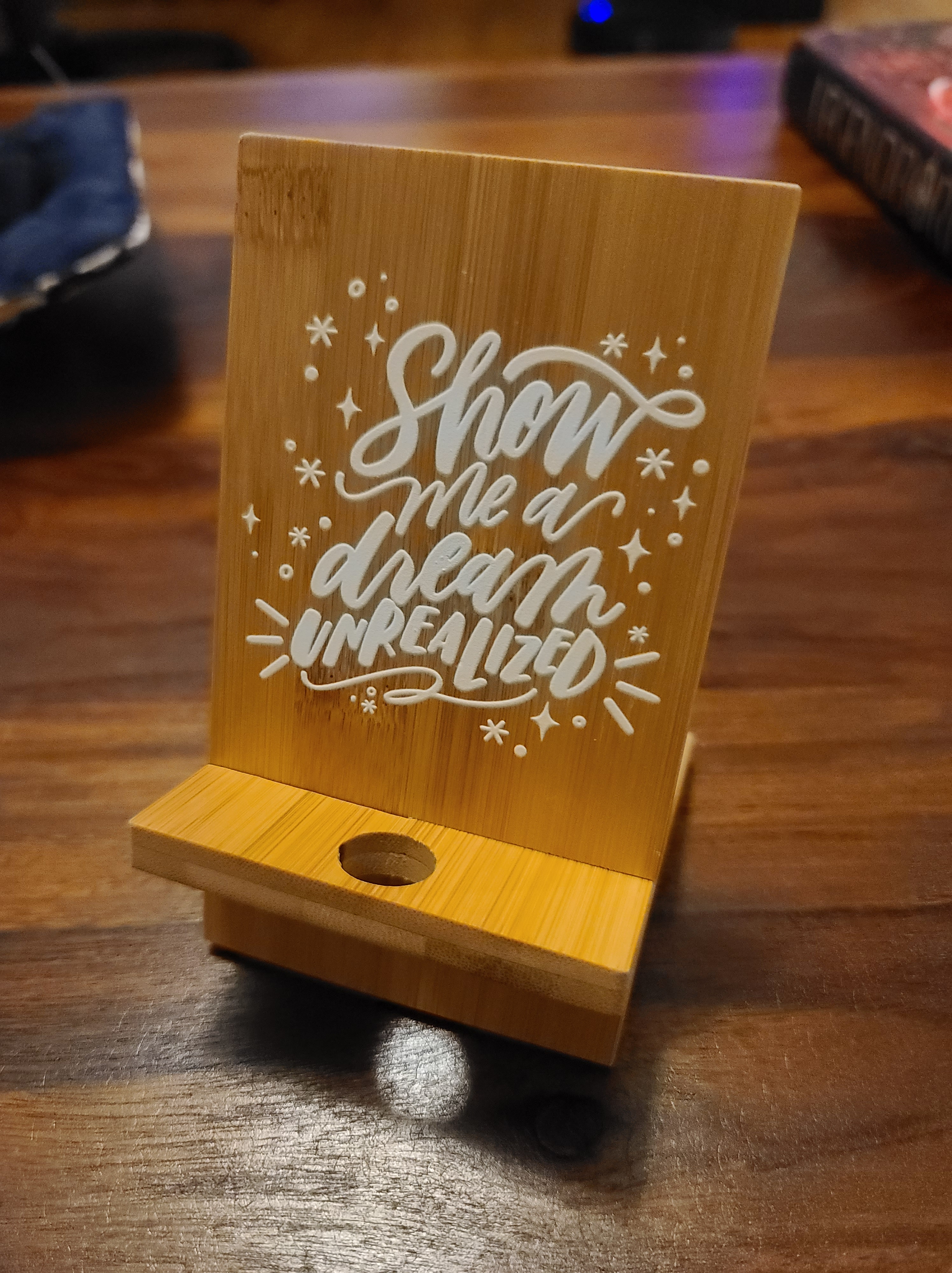 Ahhh, the bane of my existence. Small, tinkly windchimes. This is actually a super cute thing to include in a box, though perhaps it would have been more appropriate for a spring or summer box. On the right we have a little bamboo (?) phone stand with a quote from The Star Touched Queen. I’ll most likely pass this along to someone else because I don’t really use these unless they’re also wireless chargers.