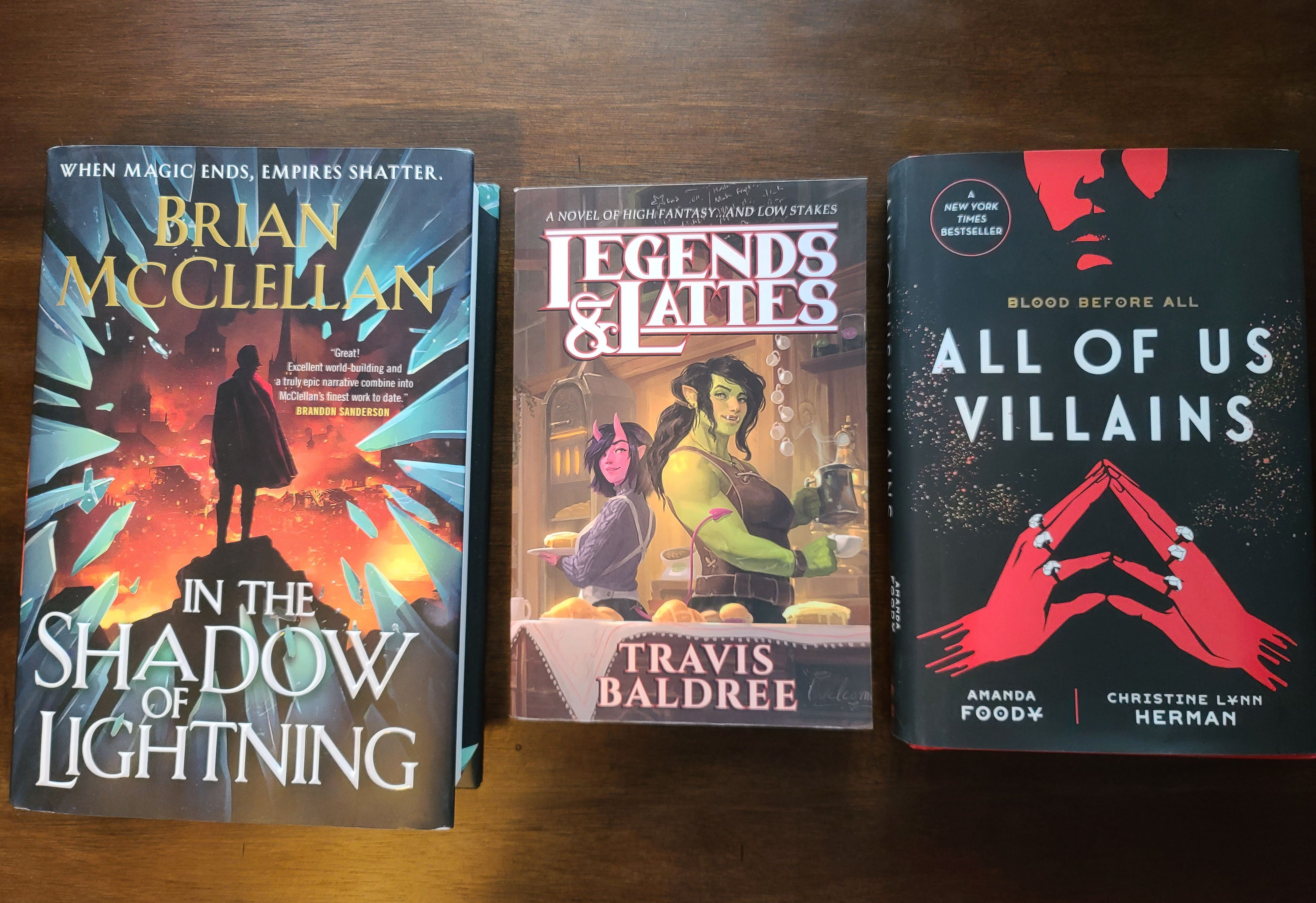 At this point in time, I’m only purchasing hard copies of books I loved because my shelf space is running low. This month I added a finished copy of In the Shadow of Lightning, the independently published version of Legends & Lattes, and All of Us Villains. I have a couple more books I’ve pre-ordered or that haven’t arrived yet, but I’ll just show those off next month!