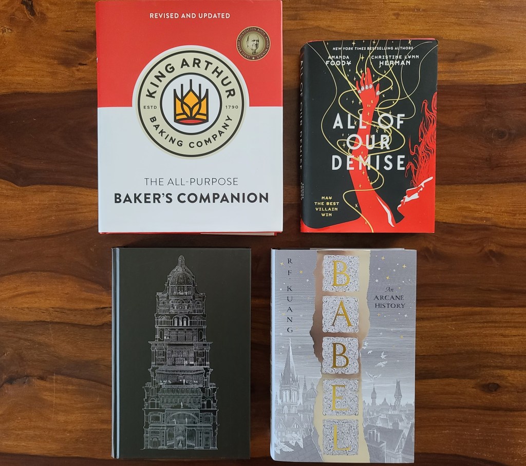 Since my last post I haven’t picked up too many new books. I did get a copy of the King Arthur Baker’s Companion cookbook which has some excellent recipes. My pre-order for All of Our Demise also arrived and I should have a review coming soon! Lastly (and most lovely of all) are my two special editions of Babel by R.F. Kuang. I’ll include some more detailed photos below!
