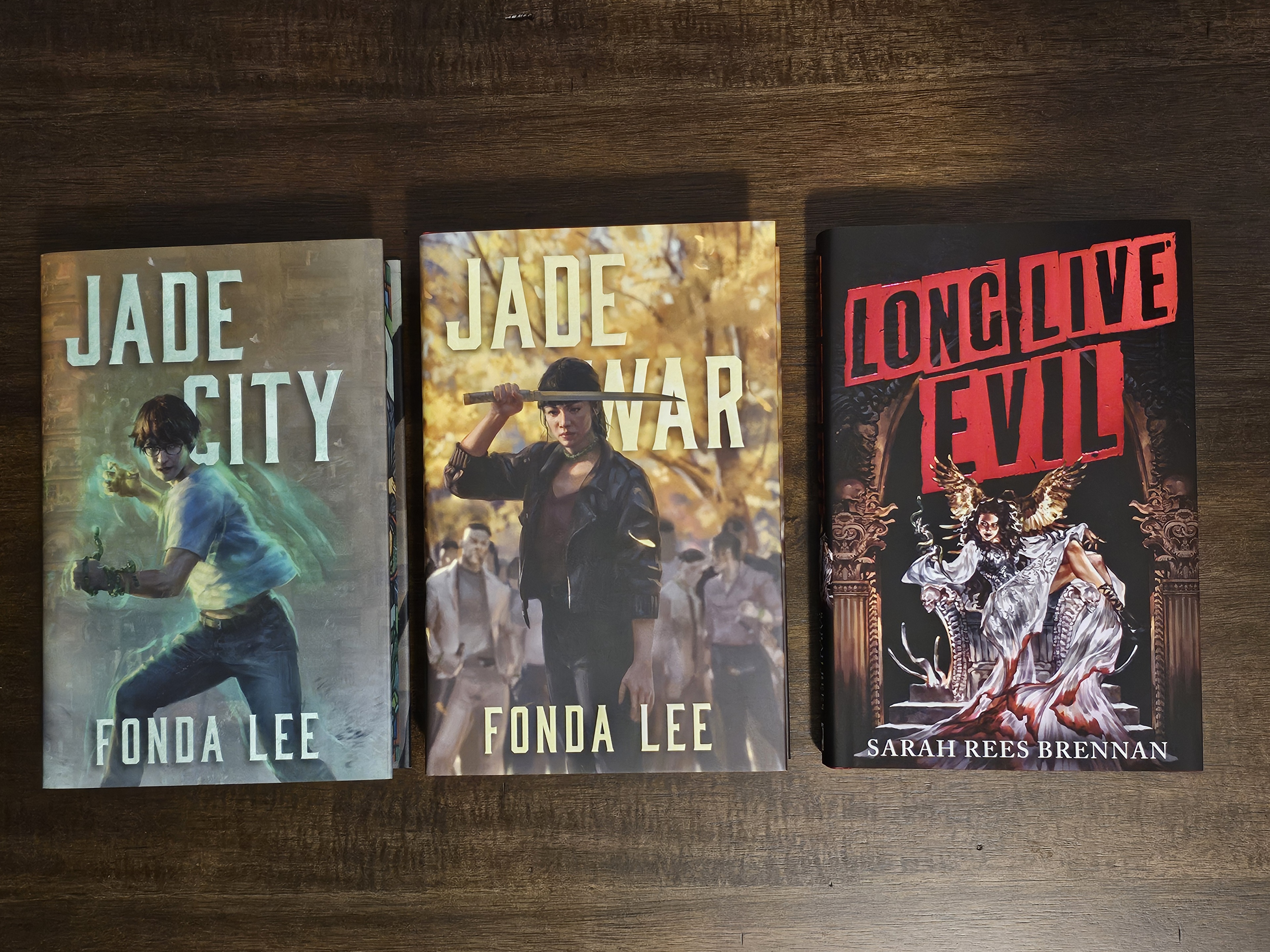 As usual, gotta show off some special editions I’ve received recently. First up, we have The Broken Binding editions of Jade City and Jade War by Fonda Lee. Next up, we have the FairyLoot edition of Long Live Evil by Sarah Rees Brennan! Below I’ve featured the gorgeous sprayed edges of these books.
