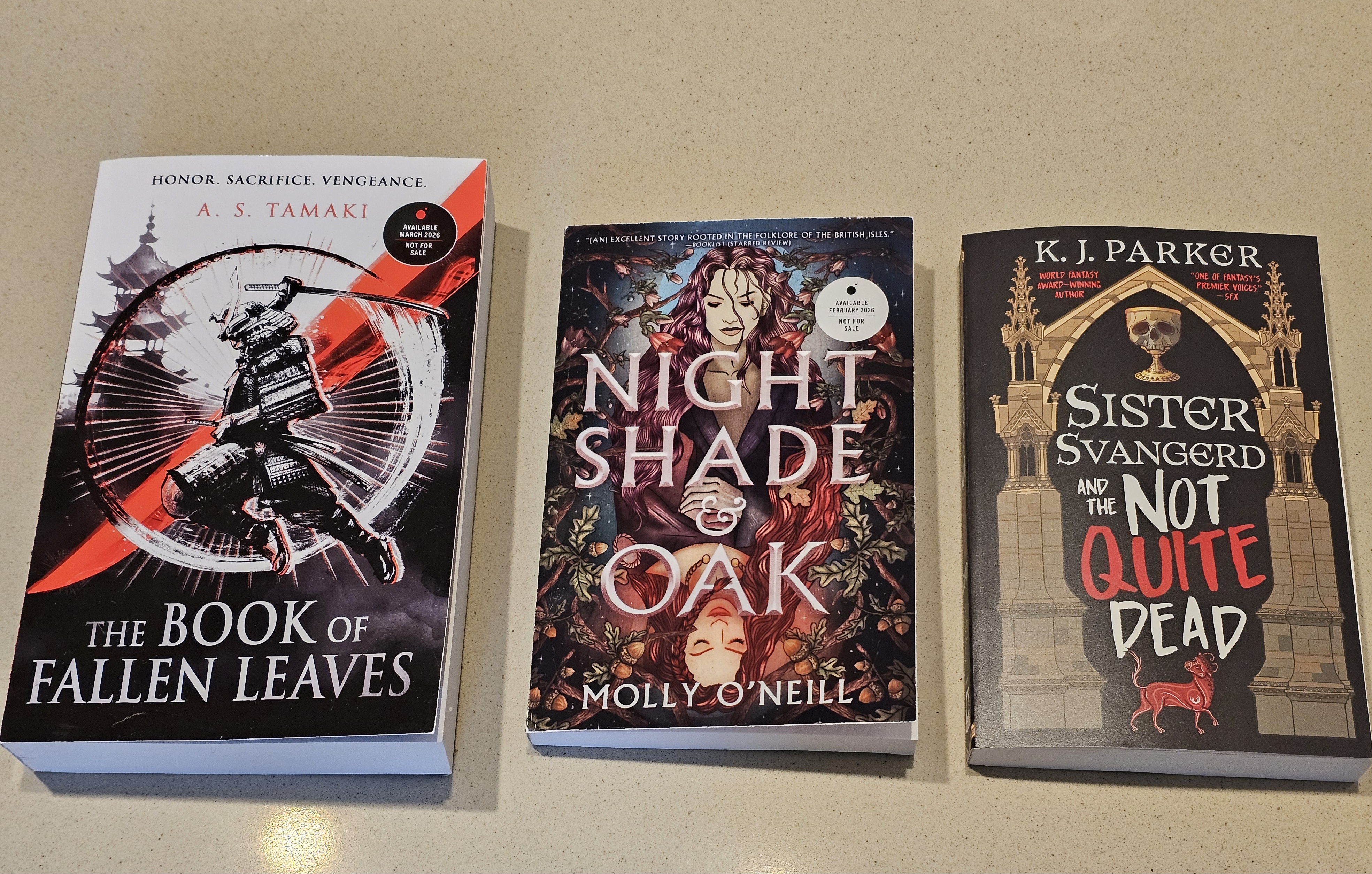 I’ve received several 2026 releases from Orbit lately, which I’m pretty excited about, including The Book of Fallen Leaves, Nightshade & Oak, and Sister Svangerd and the Not Quite Dead.